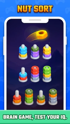 ๐ฉ Nut Sort โ Sort the screw nuts onto the correct rods! ๐ ๏ธ