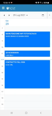 In questo modo i rapporti di intervento possono essere acquisiti, valorizzati e all’occorrenza inviati al cliente. Attraverso il gestionale ACUT Impianti avviene anche la sincronizzazione dell’agenda per la programmazione degli interventi di manutenzione ordinaria, straordinaria e per le richieste di intervento. Per l’utilizzo della App è necessaria l’attivazione dei parametri di sincronizzazione con il gestionale ACUT Impianti.