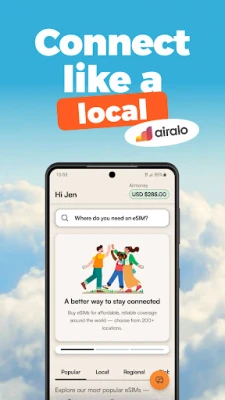 Stay connected wherever you travel. With an Airalo eSIM (digital SIM), you can connect like a local in 200+ countries and regions worldwide. Install an eSIM and get online in minutes. No roaming fees — just easy, affordable, global connectivity.