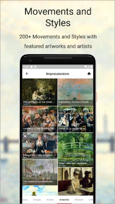 ART THROUGH THE AGES: The art content is grouped into ages, so: You can see all movements, styles, groups, schools, cultures, etc. of that age and compare the evolution of art in different parts of the world within that age.