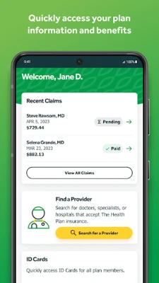 The MyPlan app lets you: • View your benefits and coverage details • Check copays, deductibles, and out-of-pocket costs • Find providers, specialists, and hospitals near you • Access and view the status and details your claims • View, download, and share ID cards • See basic enrollment information for family members on your plan • Download group-specific documents, such as plan documents