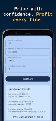 Just enter the cost, quantity, shipping, and desired profit % to get the ideal selling price in seconds.